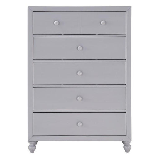 View full detailsWellsummer Collection by Homelegance Furniture Gray finish Made of man-made wood 5 Drawers Gray tone wood knobs Dovetailed drawers Metal on metal ...