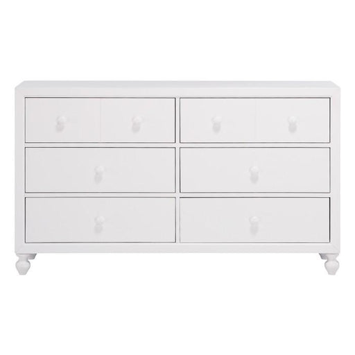 View full detailsWellsummer Collection by Homelegance Furniture White finish Made of man-made wood 6 Drawers White tone wood knobs Dovetailed drawers Metal on meta...