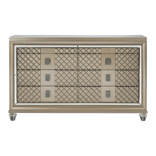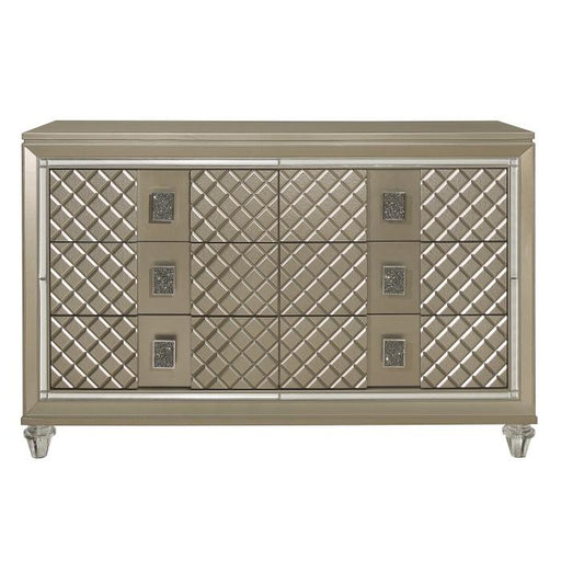 View full detailsLoudon Collection by Homelegance Furniture Champagne Metallic finish Made of wood and engineered wood 6 Dovetail drawers with ball bearing glides ...