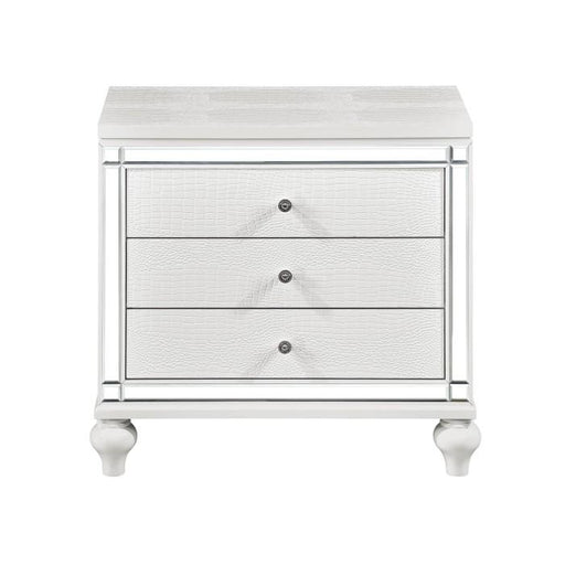 View full detailsAlonzo Collection by Homelegance Furniture White finish Embossed alligator board 3 Drawers Inlay mirrors Turned feet