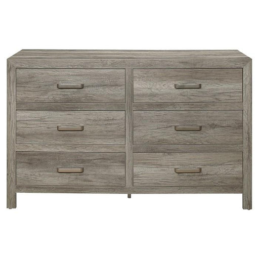 Mandan Collection by Homelegance Furniture Weathered Gray finish Made of faux wood veneer, wood and engineered wood 6 Drawers with metal on metal ...