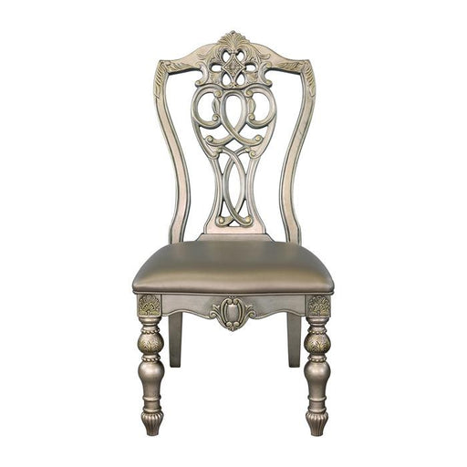Catalonia Collection by Homelegance Furniture Platinum Gold finish Made of Cherry veneers and woddseat Vinly (faux leather) upholstered seat Assem...