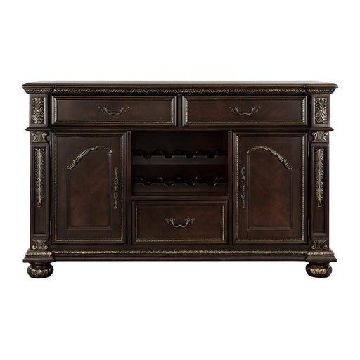 View full detailsCatalonia Collection by Homelegance Platinum Gold finish Made of Cherry veneer and wood 3 dovetail drawers with ball bearing glides 2 cabinets wit...