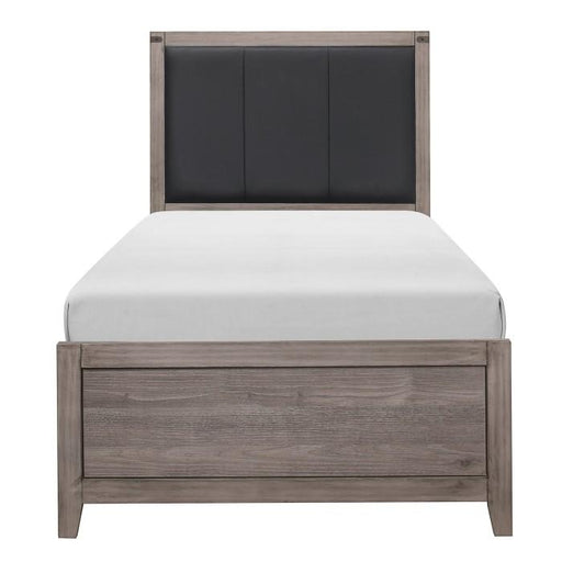 View full detailsWoodrow Collection by Homelegance Furniture Gray finish Made of manmade veneer and wood Bi-cast vinyl (faux leather) upholstered headboard Melamin...