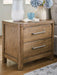 This nightstand sits comfortably at the intersection of modern lodge and farmhouse aesthetics. Your warm and welcoming disposition is reflected in the charming architectural elements and light brown glazed finish. Even with its poise, the nightstand remains practical. Included USB ports keep you charged up for late-night scrolling, defining your bedroom with reliable function and style.