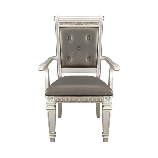Bevelle Collection by Homelegance Furniture Silver finish Acrylic inset framing Upholstered seat and back Button-tufted back Sold in set of 2 ...