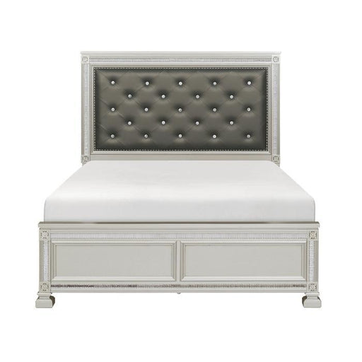 View full detailsBevelle Collection by Homelegance Furniture Silver finish Upholstered dark gray bi-cast vinyl Acrylic crystals frame Tufted button headboard This ...