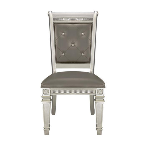 Bevelle Collection by Homelegance Furniture Silver finish Acrylic inset framing Upholstered seat and back Button-tufted back Sold in set of 2 ...