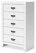 Are you a lover of casual contemporary style? Then this chest of drawers is perfect for you. The clean, white finish conveys an easy-breezy sensibility, while spacious drawers offer plenty of storage. Durable, sleek and stylish, it graces your space with timeless appeal.