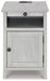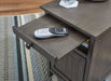 Add big character to a small space with this chairside end table. With its compact size and strong silhouette, it can go anywhere and blend easily into the decor. Less is so much more with the Shaker-inspired design and gray wood tone finish. Loaded with form and function, this end table displays accent pieces and stores essentials securely while keeping devices powered up.