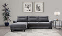Experience ultimate comfort with this modern two-piece sofa chaise, available in grey or white. The fuzzy teddy bear-like textured fabric upholstery creates a cozy atmosphere. The softly rounded arms and welt framed reversible back cushions add a touch of sophistication. With attached welt-accented boxed seats and solid wood tapered legs, this sectional ensures a well-kept appearance and sturdy foundation.