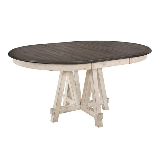 View full detailsClover Collection by Homelegance Antique White and Gray finish Made of oak veneer and wood Separate extension leaf Table extends by pulling both e...
