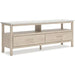 Imagine a TV stand that adds sophisticated and minimal boho style to your home with a stylish storage solution. This stand does just that. Its sleek design and replicated marble top create an upscale ambiance that's perfect for displaying your television and organizing your space.